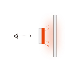 色付きシートの反射光を利用して、柔らかなぼかしの色を演出します。ただし、この効果を最大限に引き出すためには、距離が重要です。近すぎると影が強くなり、遠すぎると効果が弱くなるため、10mm前後の間隔が最も美しく発色しやすいポイントとなります。