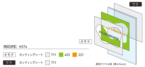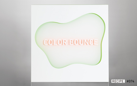 色付きシートの反射光を利用して、柔らかなぼかしの色を演出します。ただし、この効果を最大限に引き出すためには、距離が重要です。近すぎると影が強くなり、遠すぎると効果が弱くなるため、10mm前後の間隔が最も美しく発色しやすいポイントとなります。