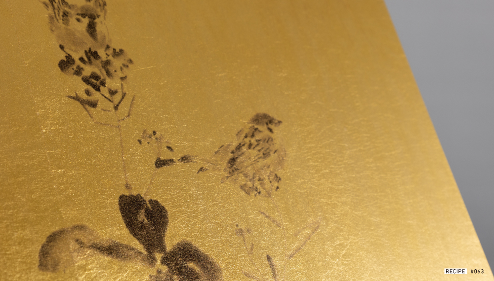 「箔シート」はラテックス印刷することでき、カラーや白インクを使用した印刷が可能です。印刷表現と箔シートならではの質感を組み合わせることで、箔の輝きを活かした多彩なデザインが実現します。